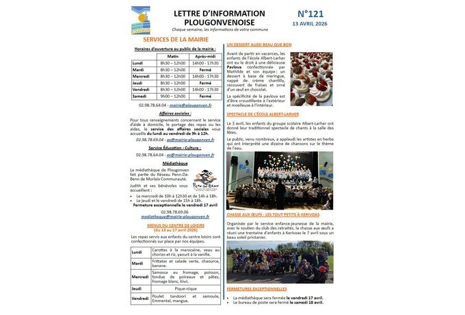 Pour recevoir la lettre d’info ou proposer un article : communication@mairie-plougonven.fr