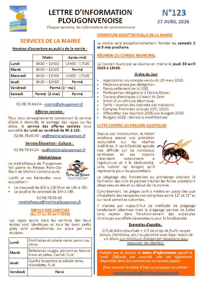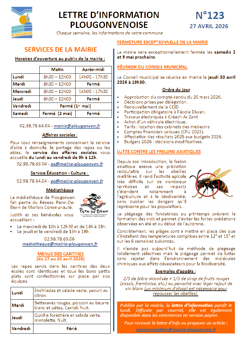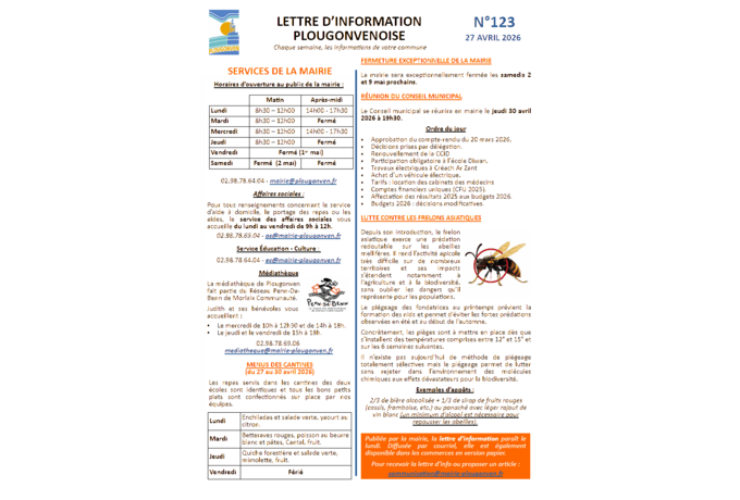 Lettre d’information du 27 avril 2026 (n°123) Mise à jour le 27/04/2026 Mots-clés : Communication Lettre d’information La dernière lettre d’information du mois d’avril est disponible. Vous pouvez la télécharger ici en pdf ou en jpeg :